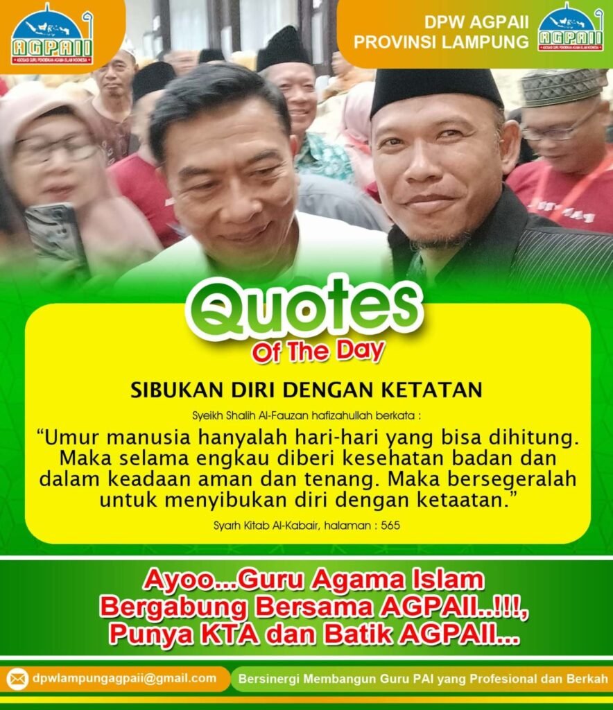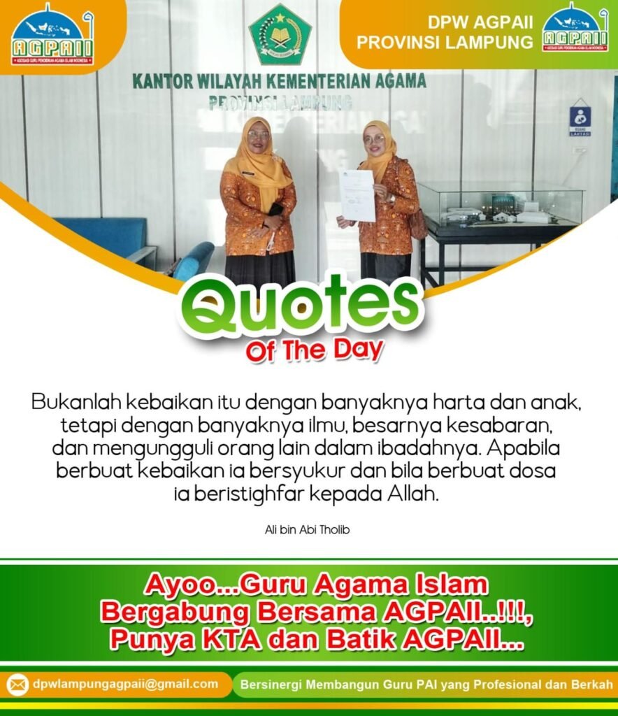 Quotes of The Day: Motivasi Guru Agama Islam DPW AGPAII Lampung. Selamat datang di halaman resmi DPW AGPAII Lampung. Pada kesempatan